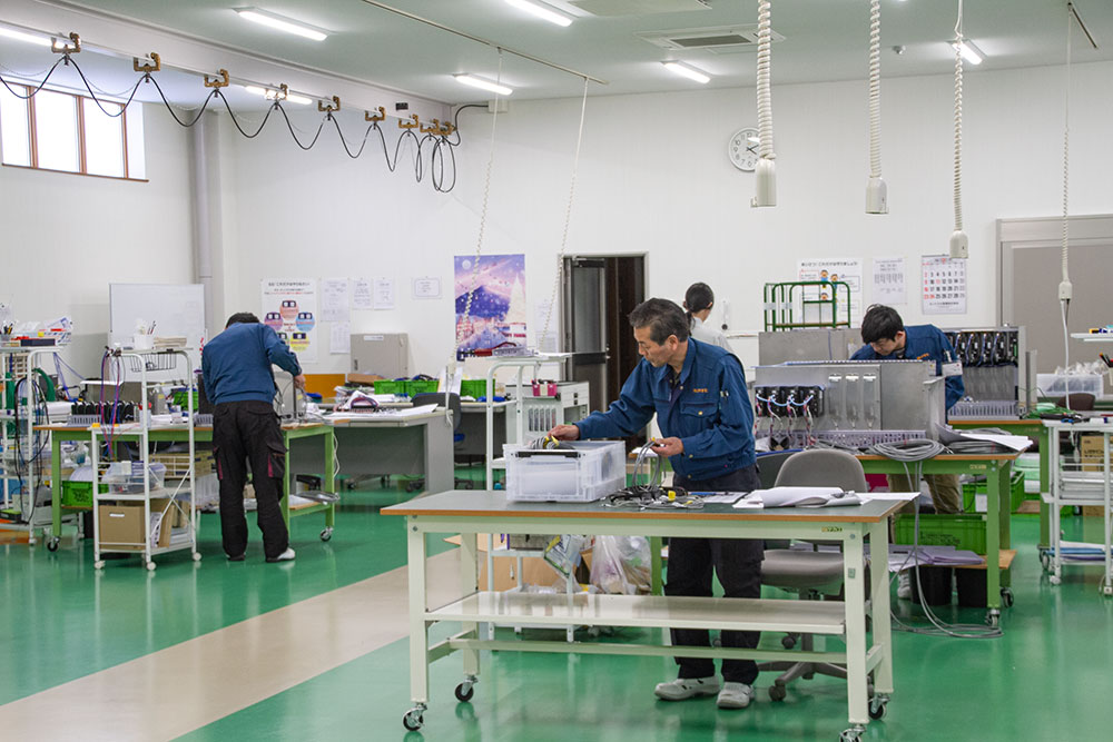 函館事業所では、お客様のニーズに合わせたもの作りとして「より高い技術で、より良い品質を、より安い価格で、より正確な納期で」製品を提供しており、現在9人体制で産業機器の制御盤などの生産を行っております。